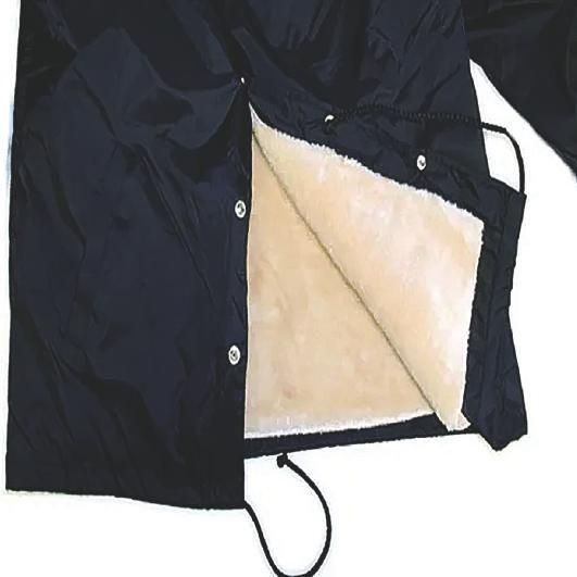 CUSTOM」がプリンティングされたボアコーチジャケットになります。裏地にボア(ポリエステル)付きのナイロンコーチジャケットで軽くて暖かい一着です。